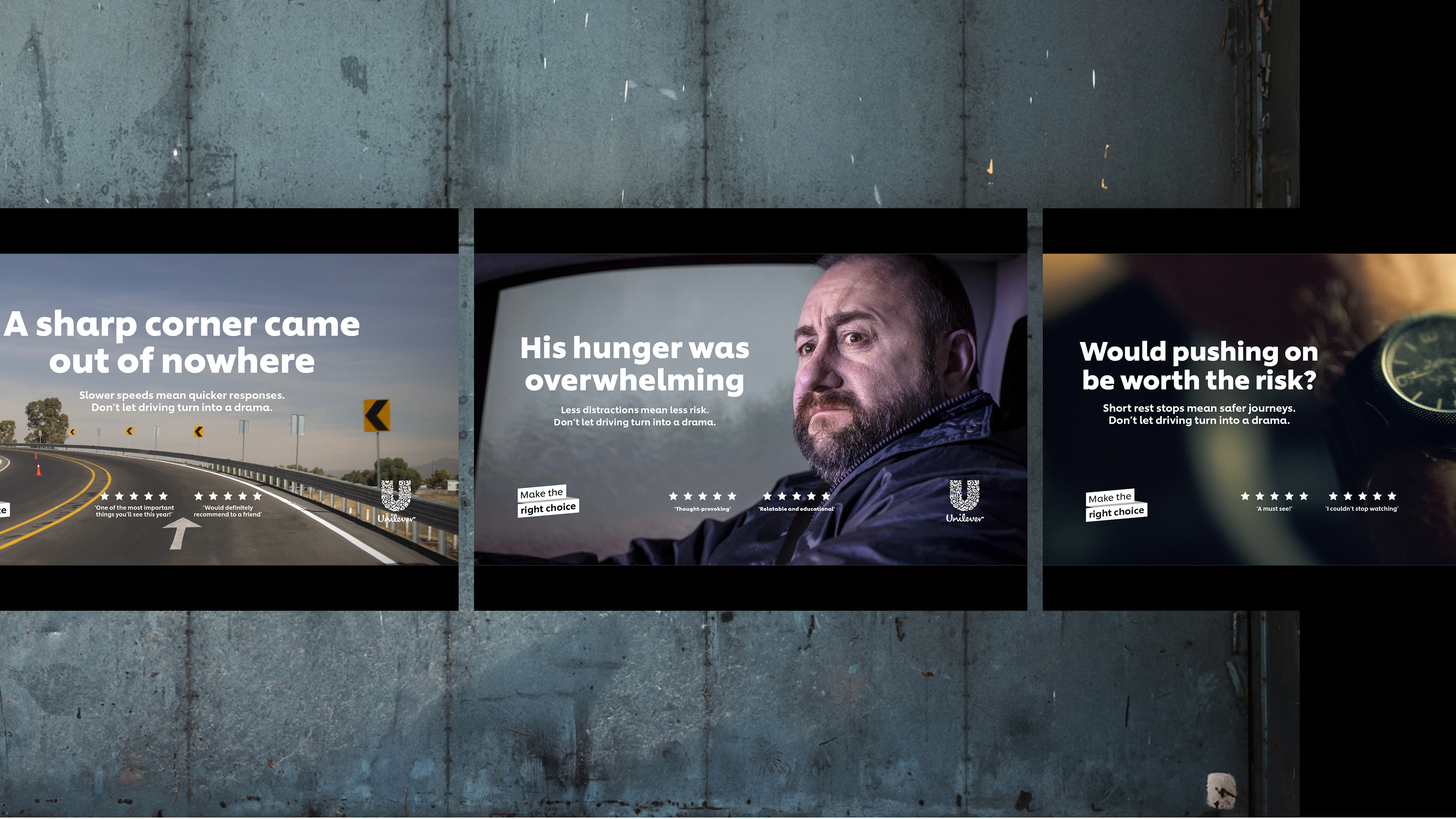 A campaign that uses a cinematic level of drama to shine a spotlight on making the right choice for Unilever drivers on the road.